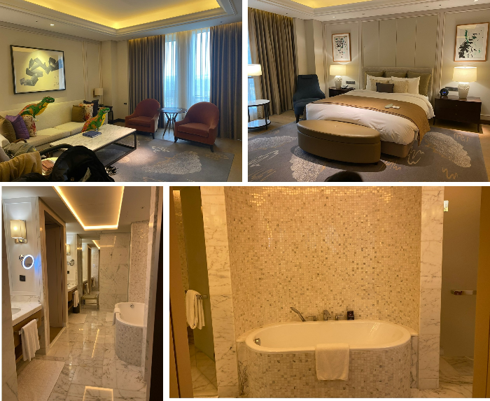 아이와 함께 했던 디럭스 스위트룸은 거실과 침실이 구분되어 있는 27평형으로 욕조와 샤워실이 넓은 스위트룸이었습니다. 인천 파라다이스시티는 같은 급들의 다른 호텔들보다 일반룸이나 스위트룸이 크게 나온 편이라 아이들과 함께 하기에 좋은 듯합니다. 분리되어 있는 구조는 아이들과 함께 호캉스를 하면서도 육퇴 후 어른들도 편안한 시간을 보낼 수 있다는 장점이 있는데요 아이들과 멀지 않은 거리에서 분리되어 만끽하는 여유로운 호캉스도 디럭스 스위트룸타입의 매력이지 않나 싶습니다. 아이와 함께 호캉스를 할 때면 시설의 쾌적함이나 침구나 화장실의 청결함이 중요한데 이 부분 또한 만족스러웠고 키즈프랜들리 호텔의 명성답게 아이의 눈높이에 맞춘 프로모션이나 옵션들이 많으니 꼭 확인하시는 게 좋습니다. 또한 숙박하시며 필요한 아이 용품의 경우 체크인 하시면서 별도로 요청을 해주셔야 합니다.(어메니티, 젖병소독기, 침대가드 or 아기침대, 아기욕조 등) 워낙 아기와 함께 호캉스로 인기 많은 호텔로 늦게 체크인하는 경우 선착순으로 마감되기 때문에 예약 시 사전에 요청 및 확인해 두시는 것이 좋습니다.